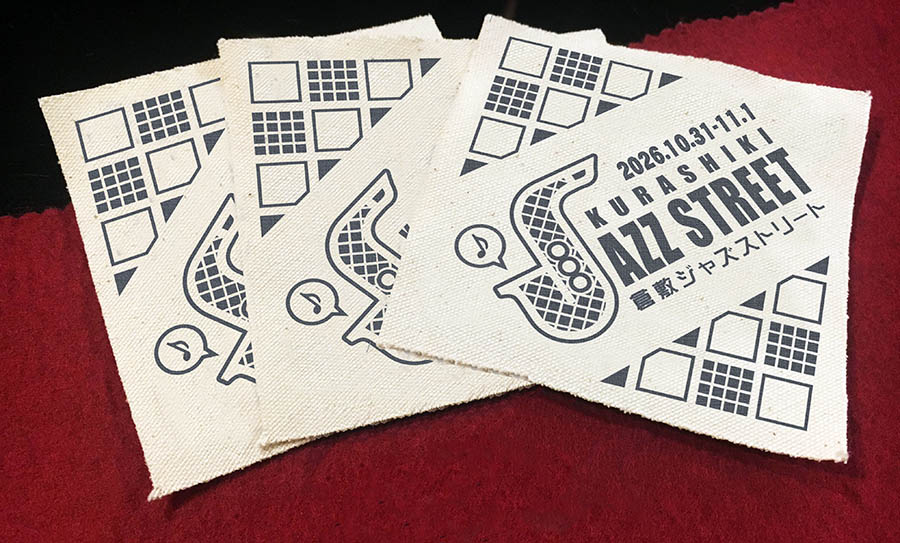 倉敷帆布でできた特製コースターチケットです。 前売1,500円 当日1,500円(小学生以下はチケット不要です) 県内有名プレイガイド、演奏会場、出演者、公式オンラインショップからお買い求めいただけます。 10月31日、11月1日の2日間、町家ジャズの全会場を自由に入退場できるフリーパスチケットです。 ひもをつけて首にぶらさげるもよし、 安全ピンで服やかばんにつけるもよし、 色紙代わりにサインをもらってもよし。 自由な使い方で活用してください。(※パンチ穴は開いていません) チケットとして使用した後は コースターとしても使えます♪ 倉敷のお土産としても好評です。